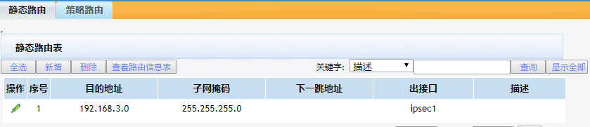 现在A与B点之间建立了IPsec VPN链接(DDNS:A点WAN1口绑定3322动态域名,B点绑定花生壳动态域名解析公网地址),在A点路由器上添加了静态路由,目的地址指向B点网关地址(192.168.3.1),出接口指向ipsec。