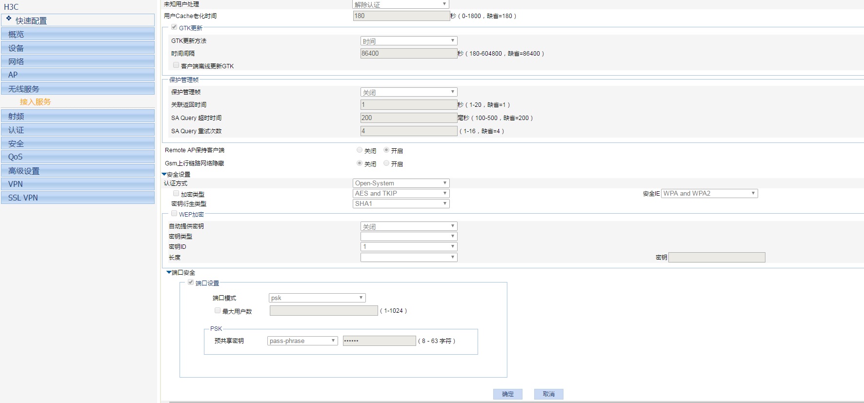 2,登录设备后,需现在无线服务里接触模板的绑定,再点编辑才能修改密码(web登录),命令行下,接触射频口的绑定,然后登录无线接口改密码