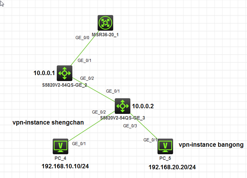 业务网关全部在一个核心上,不同的vpn实例之间需要互访怎么弄怎么配置?