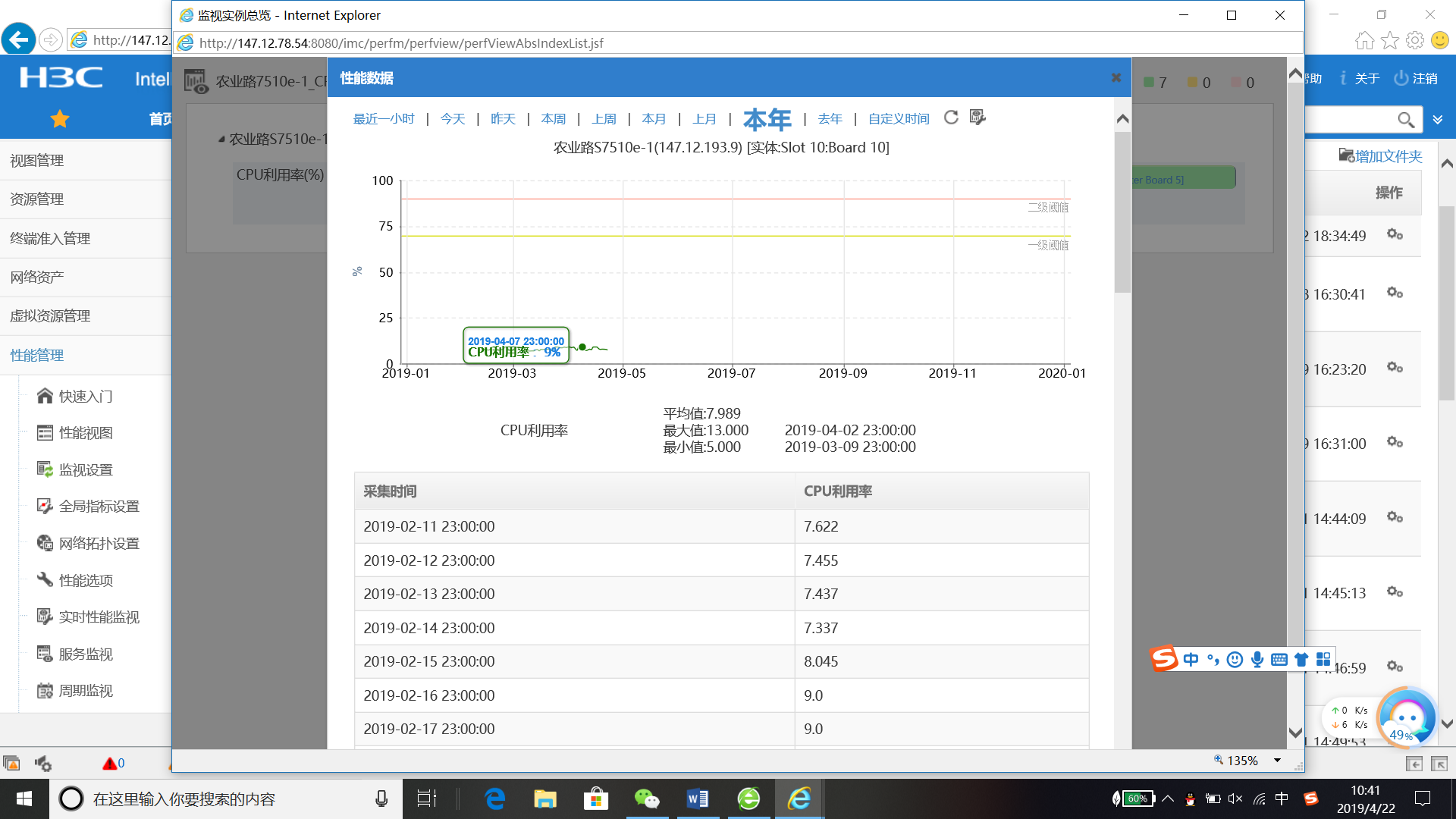 IMC性能视图,性能数据查询本年的数据只显示23:00的数据,没啥意义能改?在哪改?