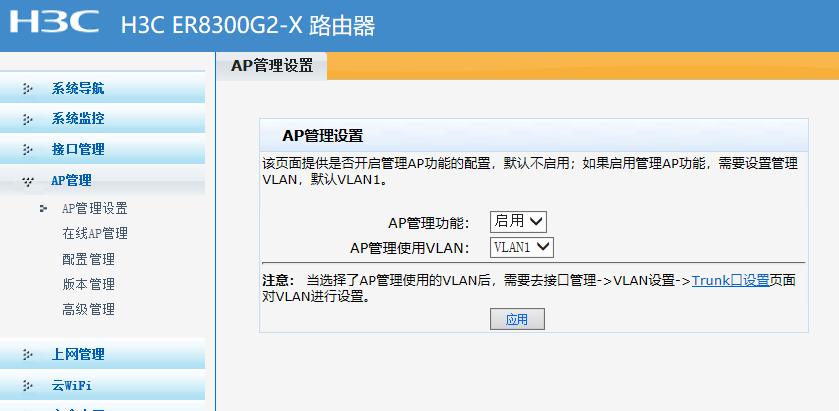 如果启用管理AP功能,需要设置管理VLAN