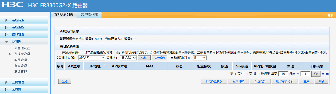 谢谢提点,但我看了手册之后,发现我开启AP管理之后,“在线AP管理”中“在线AP列表”里没有发现任何在线AP,这是为什么?