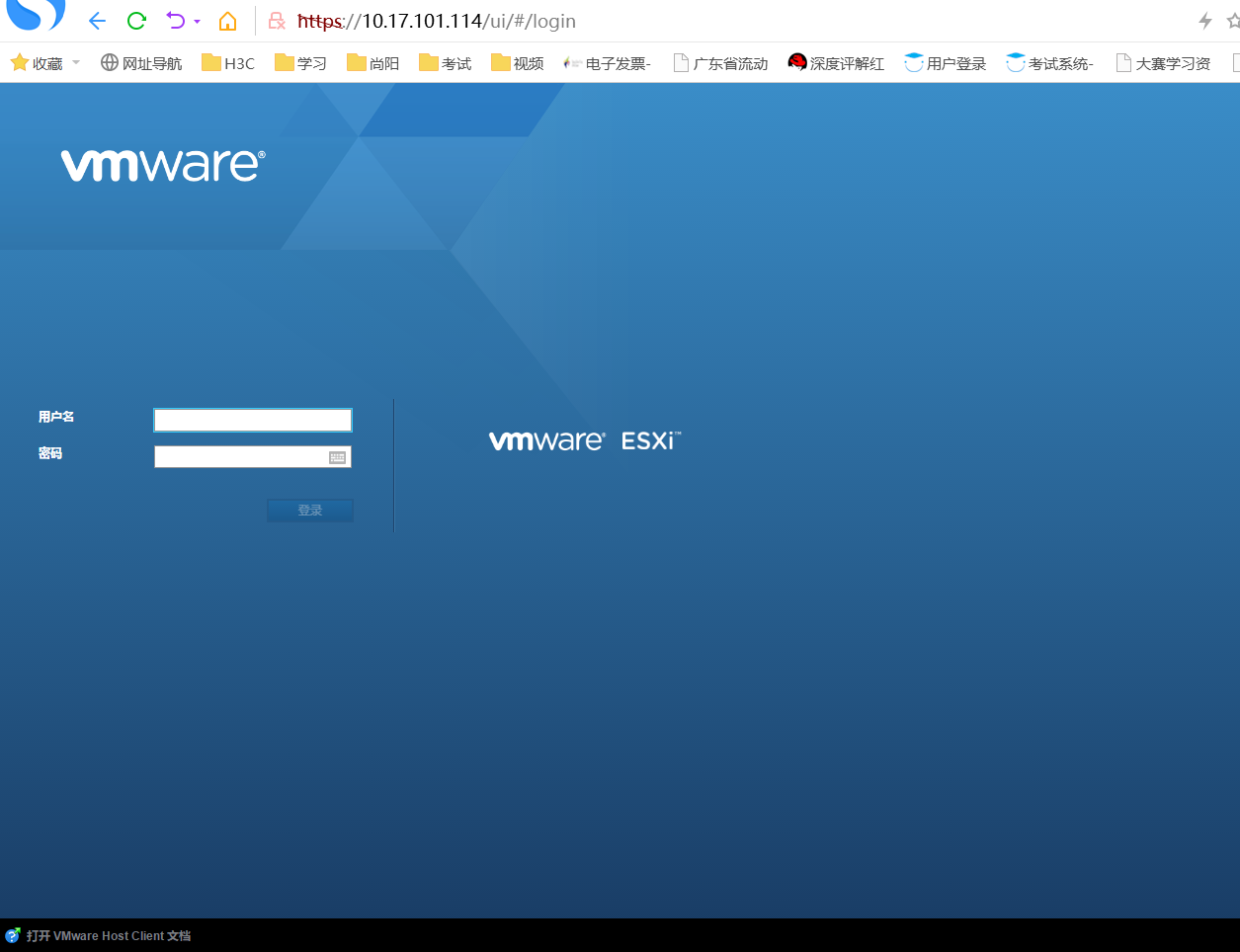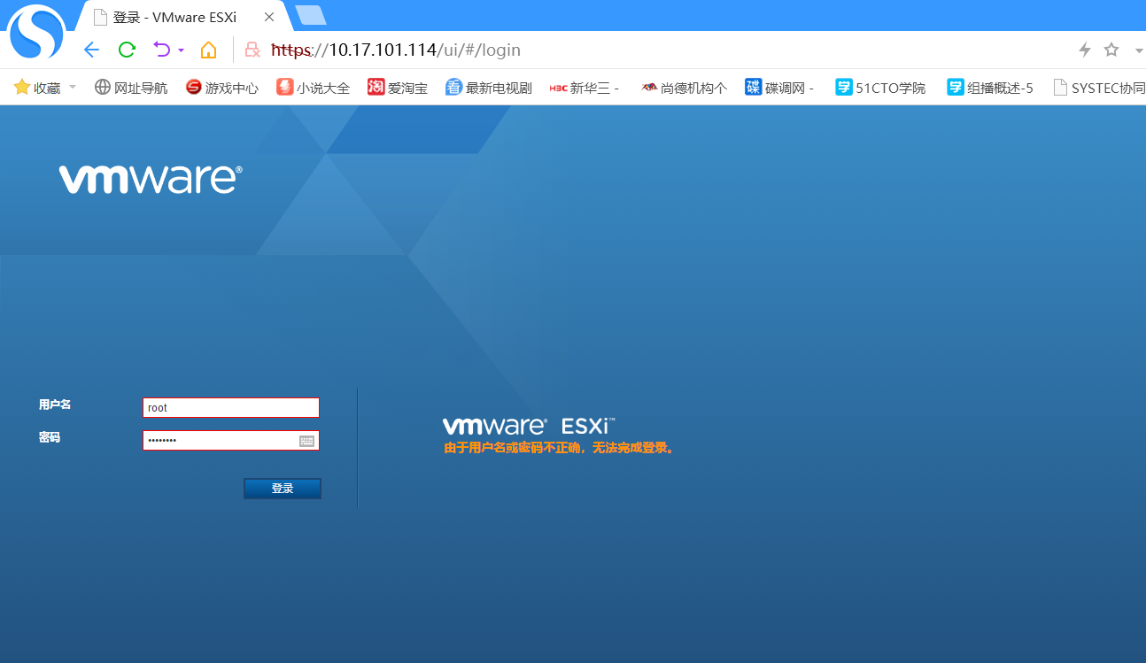 将Imc平台安装在VMware虚拟机上,在安装imc-plat中的install.bat过程中,出现虚拟机安装验证页面(如图一),所填的宿主机参数是否为VMware EXSI(物理机)的IP地址和用户名密码(如图二),当中出现的一个问题,通过虚拟机安装验证之后,显示验证失败后(如图三),而输入原先的用户名密码,VMware EXSI物理机的网页登不进去(如图四),而物理机的操作系统页面,输入原先的用户名密码正常登陆。