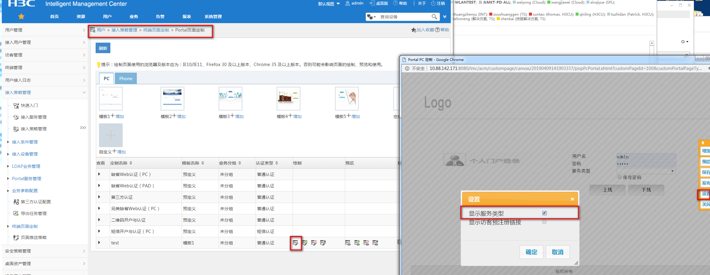 平台,portal认证服务类型能下拉框怎么取消只输入密码和账号,用户只想输入密码和用户,就不想要选择服务类型的的下拉框,