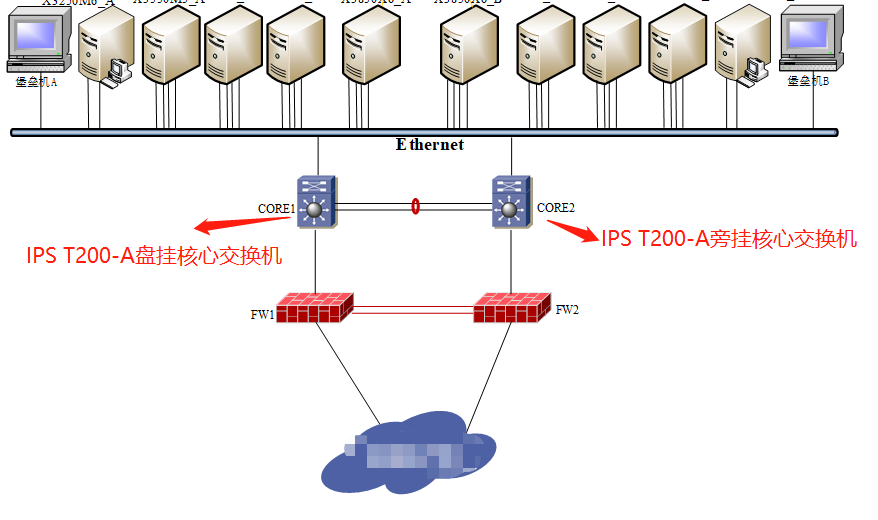 两台IPS T200-A组成HA,流程镜像过去,核心交换机改如何配置?请给出配置方案,谢谢。