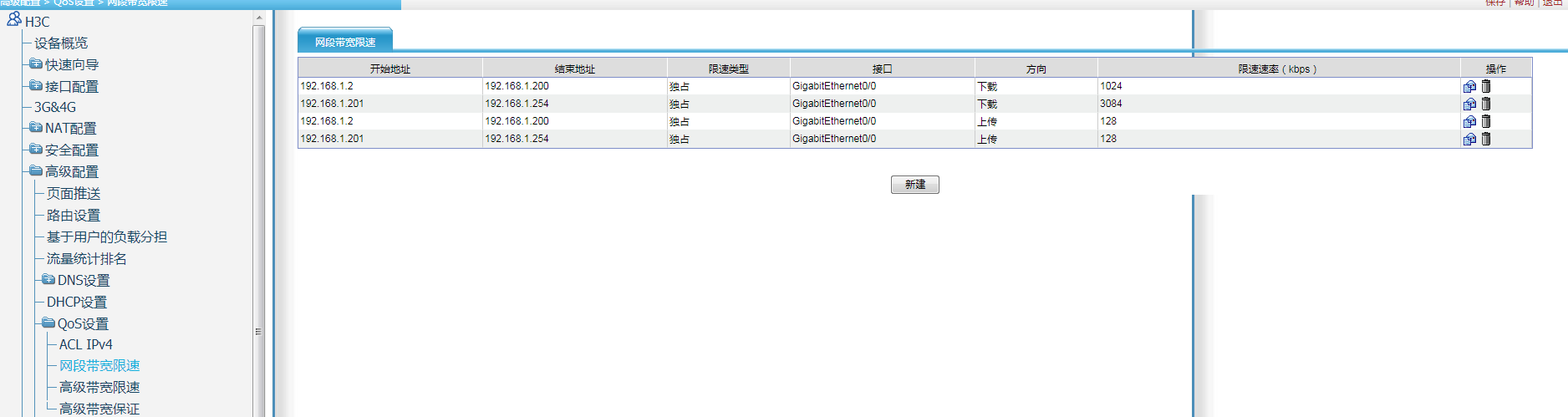web下可以进行网段限速,当然命令熟的话也可在CLI下限速