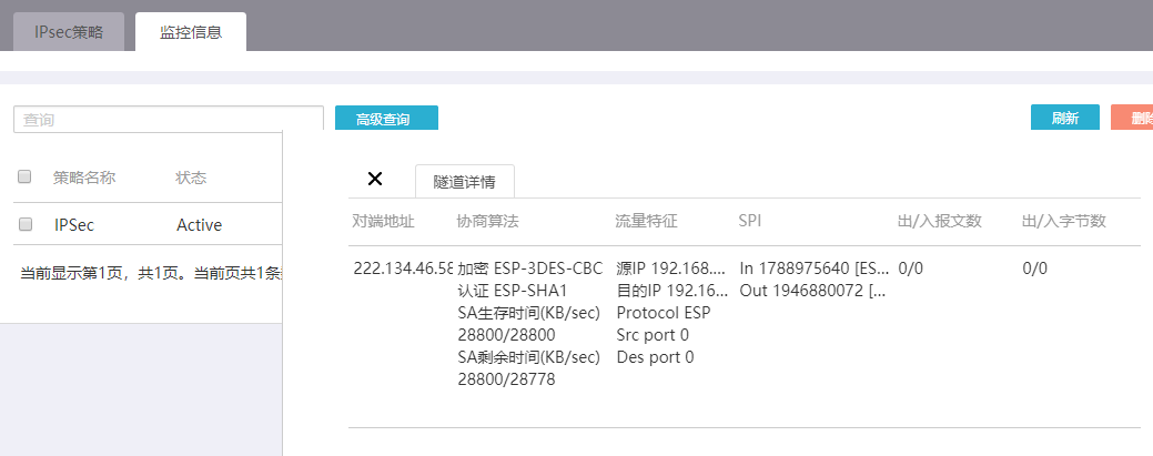 如下图:H3C 与tplink建立IPSec vpn连接后,没有流量,两端内网不通,求大侠指教原因