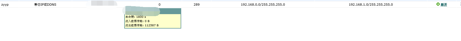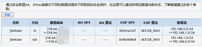 按那个教程的设置;我添加了一个静态路由;但还是无法ping通对端的网关,现在安全联盟都是链接上去的;就是ping不通;这是对端路由器的状态;显示联通了;但是没有流出数据包