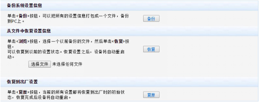 注意:恢复将清空全部配置,设备所有配置将恢复到出厂配置,请谨慎操作。