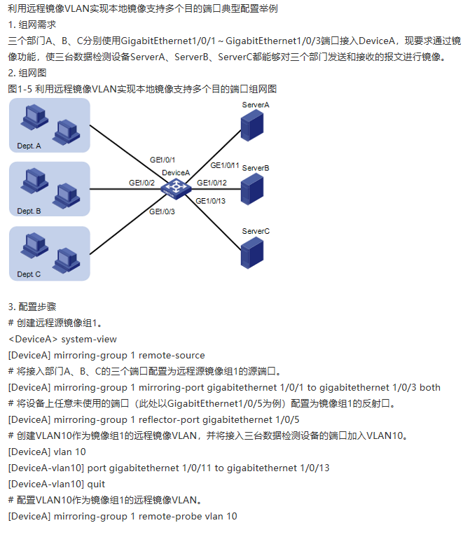 之前在社区上看到以下一片文章,并且我在S3600V2系列交换机(Version 5.20, Release 2108P01)上配置,成功实现了多对多镜像。但在现场另一台S3600交换机上则出现问题: