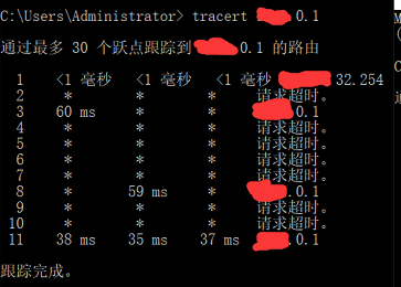 0.1为对端开启ipsec的路由器内网IP,tracert会出现类似的循环。两边分别tracert对端路由ip都会出现这种情况。