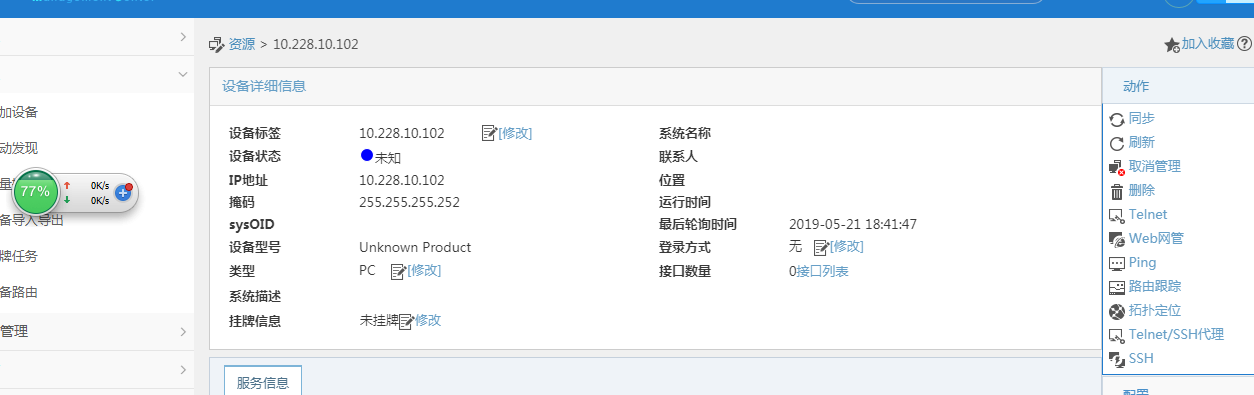 请问下,我添加设备,为什么显示状态为未知,并且同步失败。如怄下图所示,我反复检查了路由器的snmp 配置,没有错误,我一共