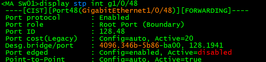 端口为非边缘端口。