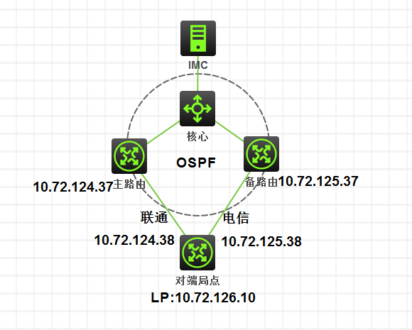 由于运营商链路中断,MSR设备本身接口不会down,造成了imc无法检测到中间链路的通断。主备路由器下联是子接口。两种方法测试均无反应。查看logbuffer只有一条源到目的up转down的记录,并没有生成trap发送给imc服务器。