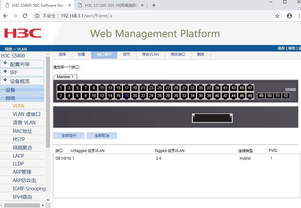 你好我有一台h3c s5800一台 h3cs5130之间 Hybrid 方式连接 两边都untagged vlan1 tag 只能设置4个valn 再多加tag valn的数量,所有untag 和 tag的连接就会中断