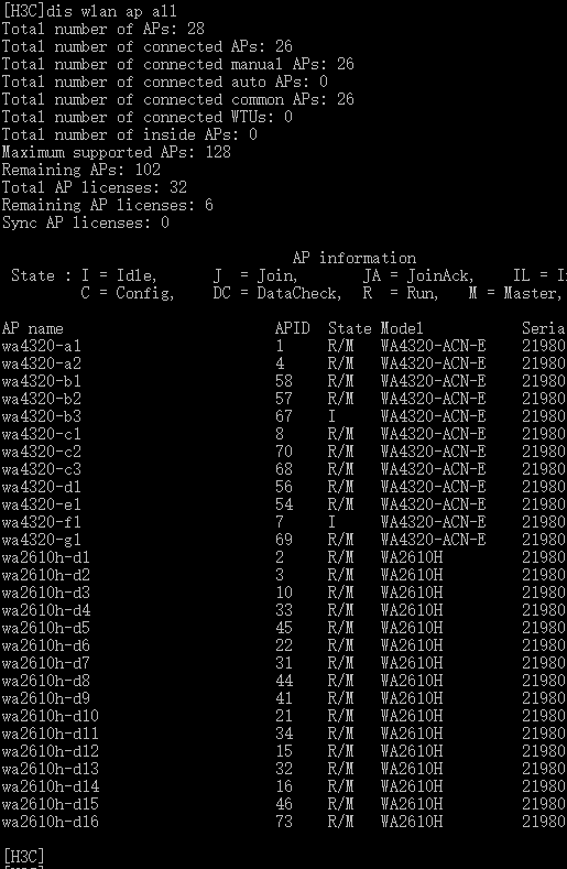 我现在又一台WX2560H 的ac,有32个授权,16个面板ap :WA2610H,12个吸顶ap :WA4320-ACN-E。