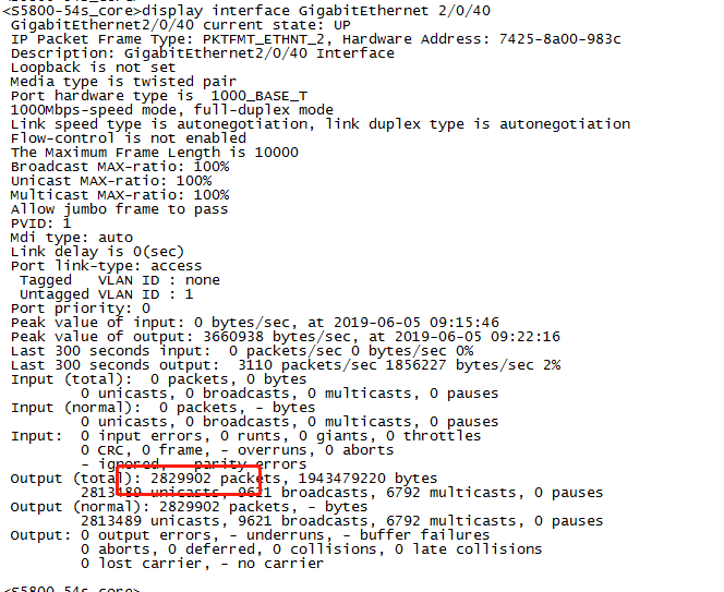 感谢大神回答,我用display packet-drop interface GigabitEthernet 2/0/40查看是没有丢包,那我这个两者统计结果差异是什么原因?