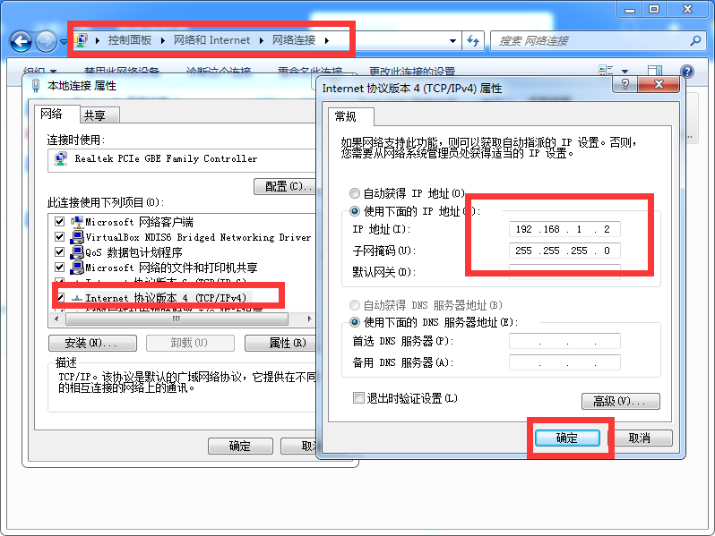 一、修改电脑IP地址: