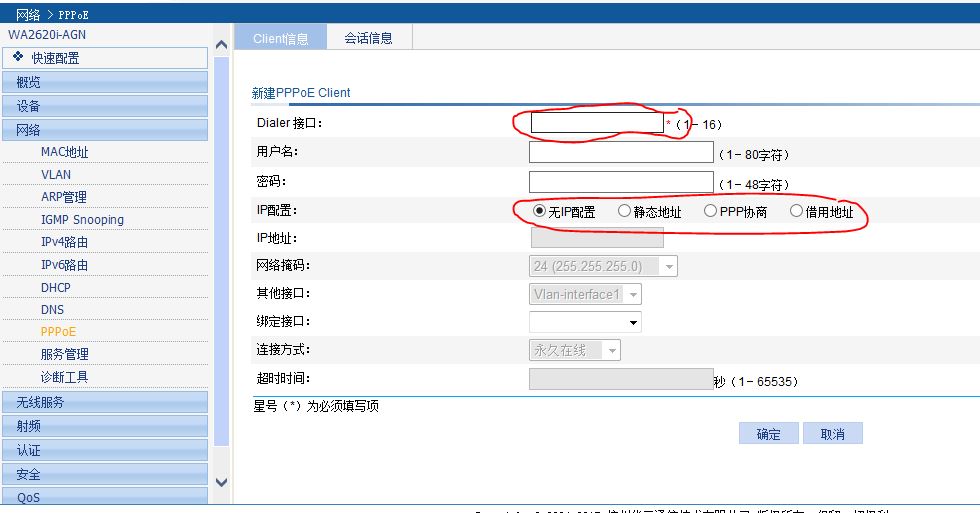 大家好!WA2620i-AGN从瘦AP刷成了胖AP了,用IE进入管理地址192.168.0.50,进去之后怎么设置成电信的pppoe上网?这两处怎么填写呢?