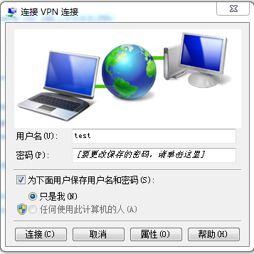 点击确定后,双机vpn连接图标,在下图中输入密码