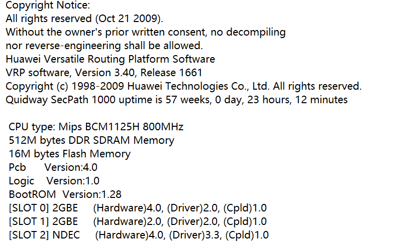 这机器壳子是h3c,系统是华为的,应该是华为3com时候的产品。目前问题来啦,我想关掉下面这个登录banner。header好几条命令都不行,有没有办法不显示下面的banner。查了vrp3.4,也没有找到。