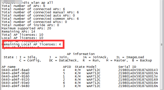 1、dis wlan ap all的时候可以看到剩余可用license,排除license不够