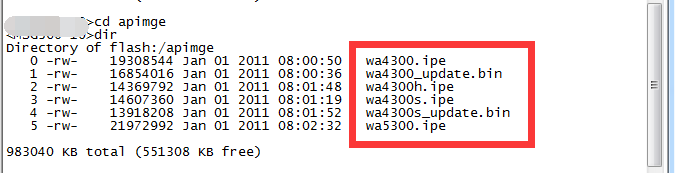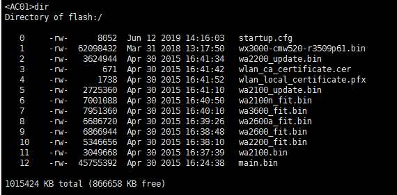 3、检查AC设备的flash卡中是否有当前AP的版本,dir