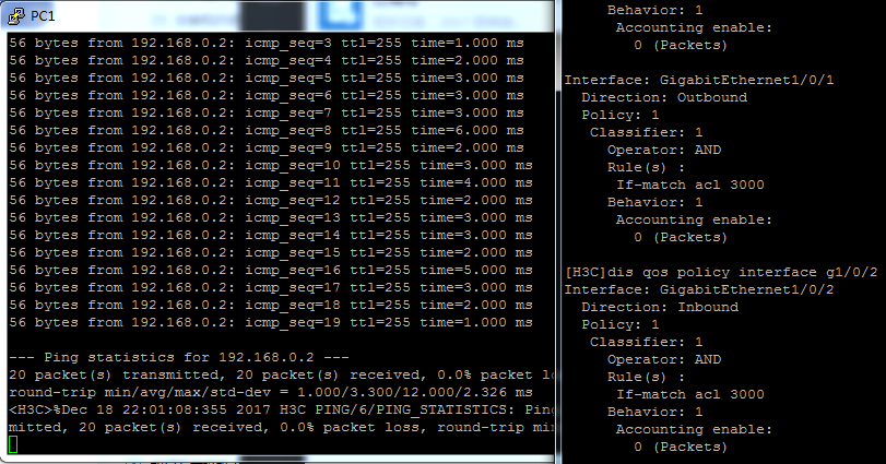 acl ad 3000 rule per ip sou 192.168.0.1 0 des 192.168.0.2 0 rule per ip sou 192.168.0.2 0 des 192.168.0.1 0 int g1/0/1 qos ap po 1 inb qos ap po 1 out int g1/0/2 qos ap po 1 in qos ap po 1 out