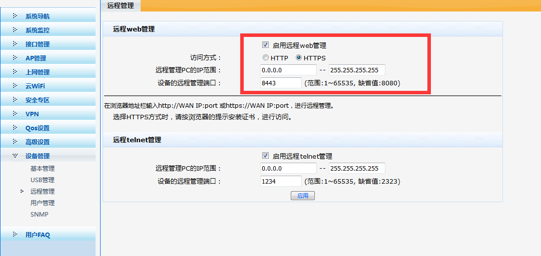 ER3620G2 不能远程web网管登录,勾选“启用”、更改端口号还是不行,请问如何配置?