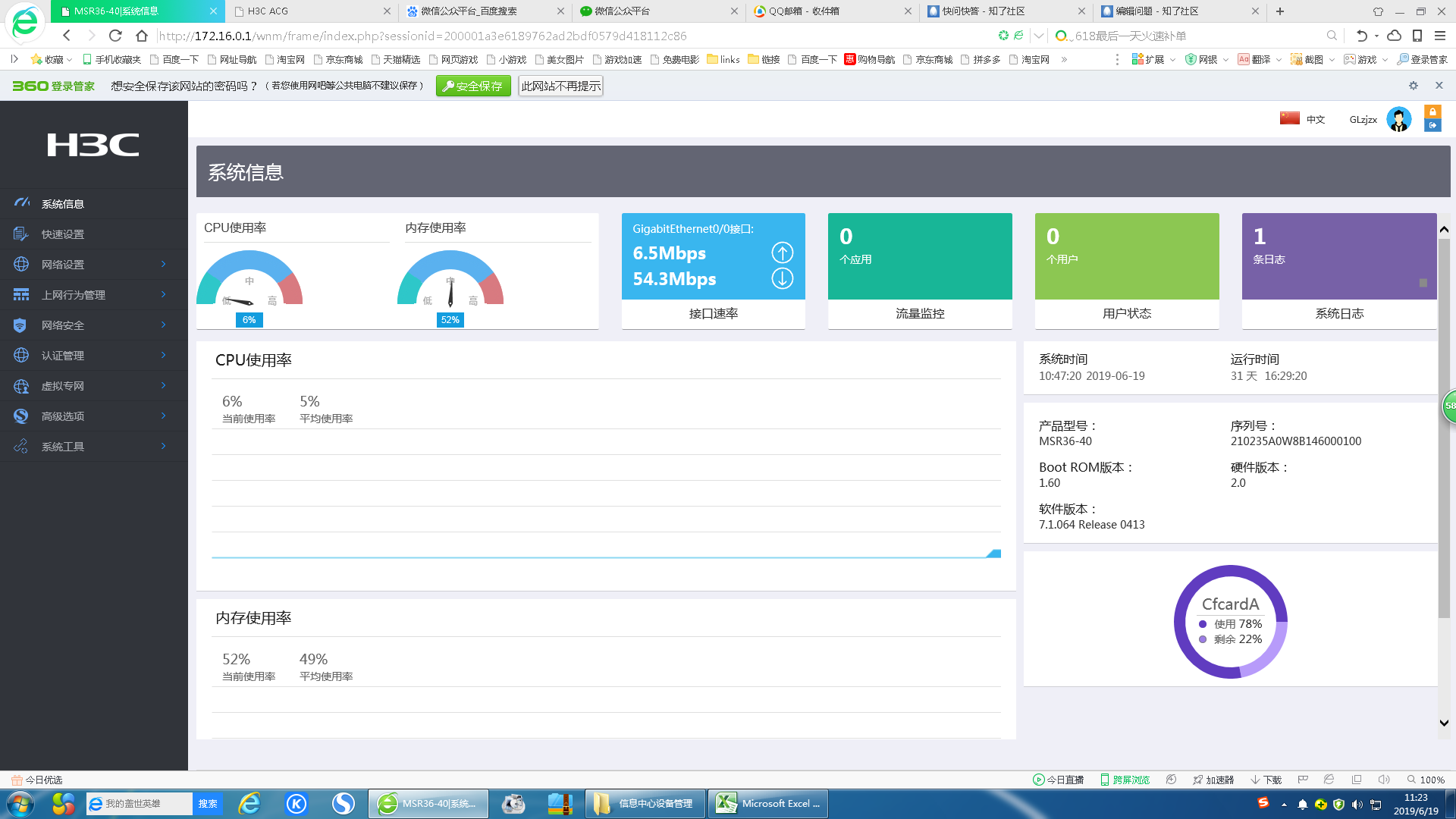 H3C路由器MSR36-40 过保,电信两条光纤,如何配置双出口上网。