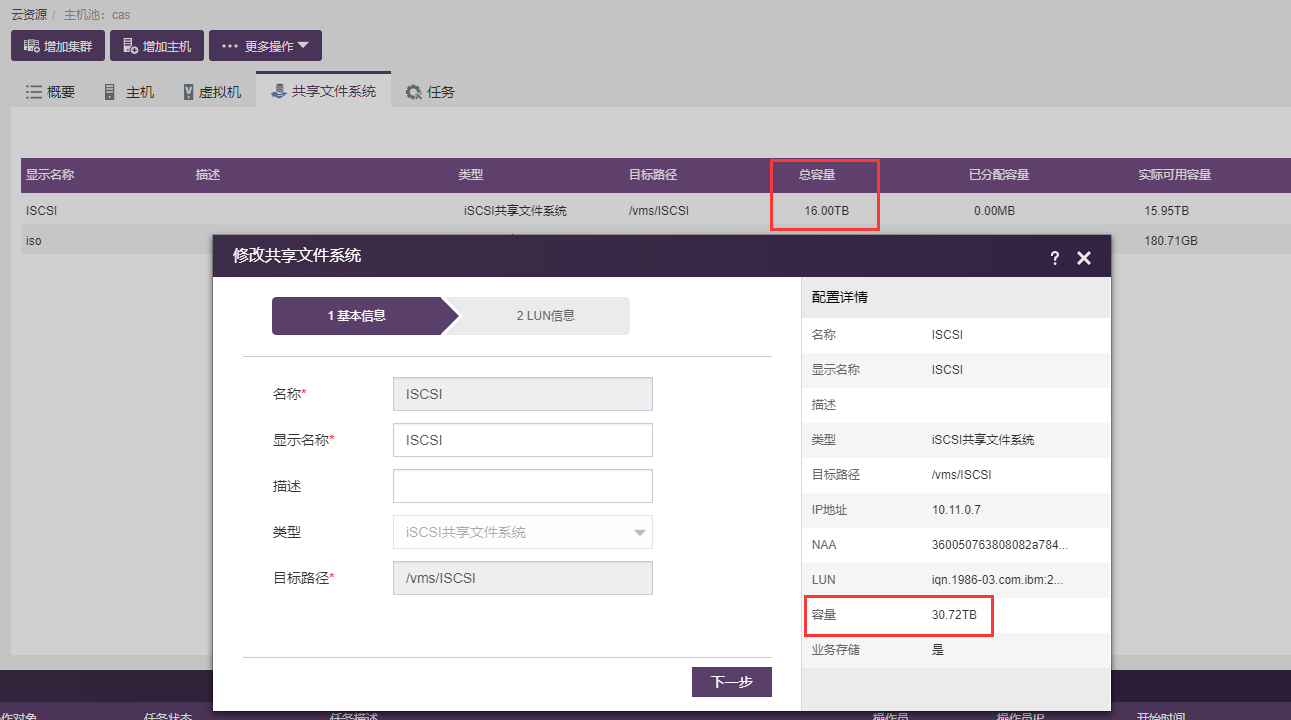 共享文件系统容量30.72T,挂载进CAS平台后显示容量16T,是什么原因呢?