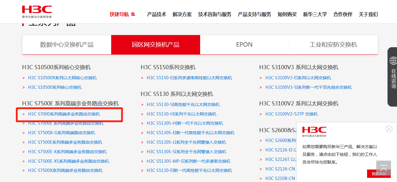S7003(已停产)作为入门级的框式交换机,支持路由协议等三层特性,是个三层交换机,官网截图如下: