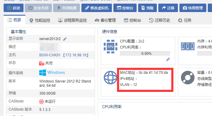 请问各位cas平台中虚拟机概览界面,硬件信息栏IP地址关机之后会显示吗?