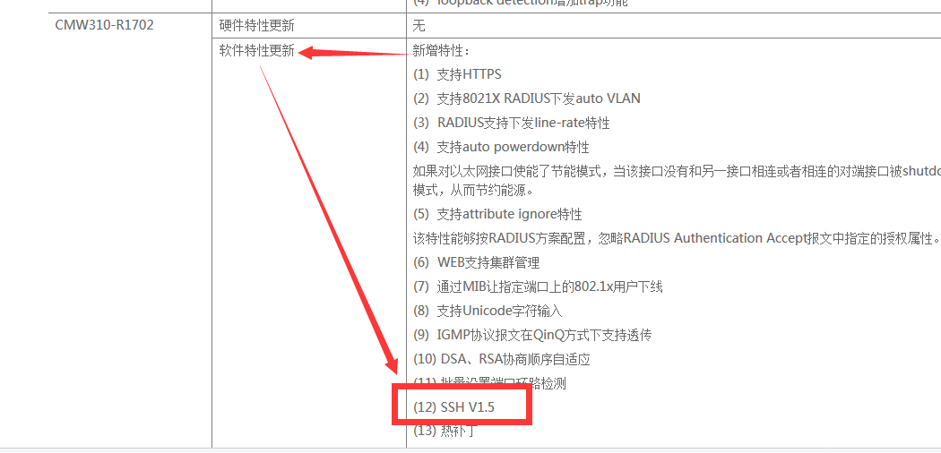 请检查软件版本,在官网软件版本更新记录中找到 CMW310-R1702之后的版本才支持ssh