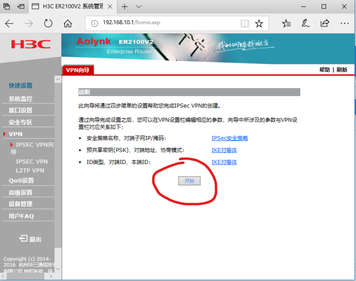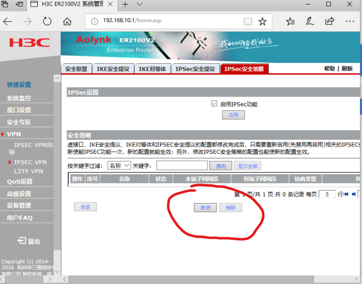 ER2100V2路由器。设置不了IPSEC ,点向导或新增都没有反映。回复过出厂设置没用。什么情况。软件版本ER2100V2V100R004