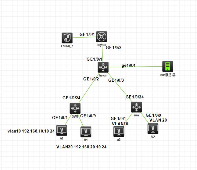 问题2:与imc的互通,只要在vlan a和vlan b的交换机上写上到imc的路由,同时imc侧加上到 vlan a和vlan b的回程路由就可以