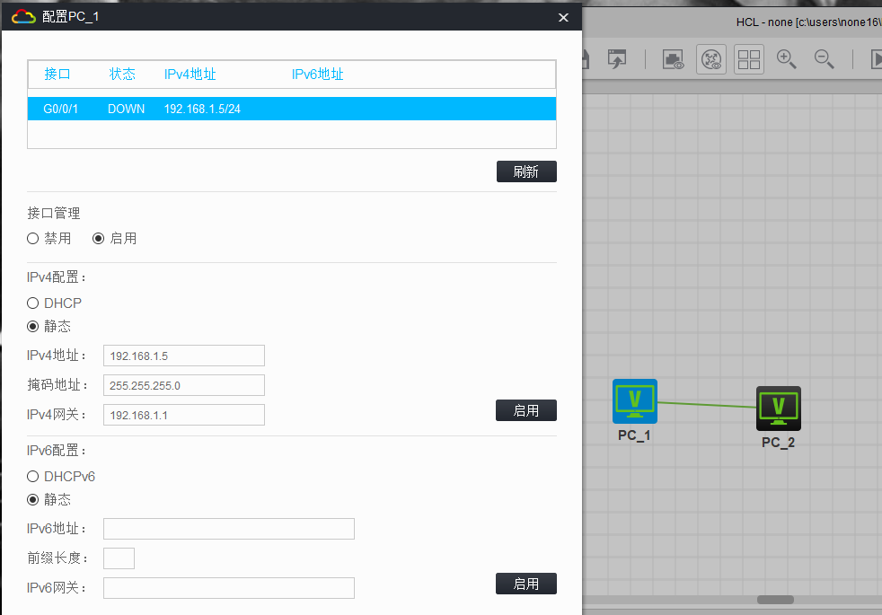 设置没问题,你在接口管理那里禁用启用一下试试看。多试几次,模拟器有时候是会出现这样的问题,或者启用一台交换机,把pc连上去测试一下。