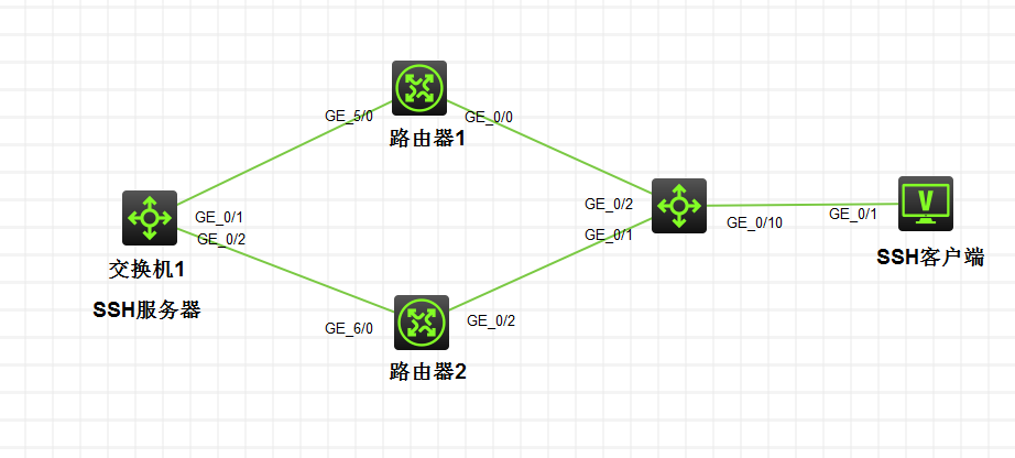 客户端到两个路由器是等价路由?如果是等价路由的话,在交换机1上做的话不好控制,可以在客户端互联的设备上将去往SSH服务器指向路由器1的路由优先级调高,让客户端去往服务器的报文走通过更优路由走向路由器1.