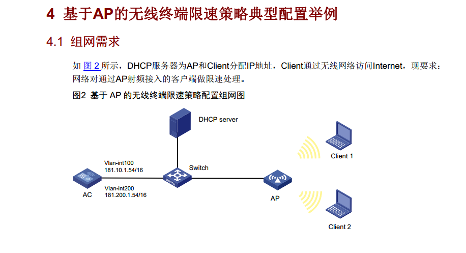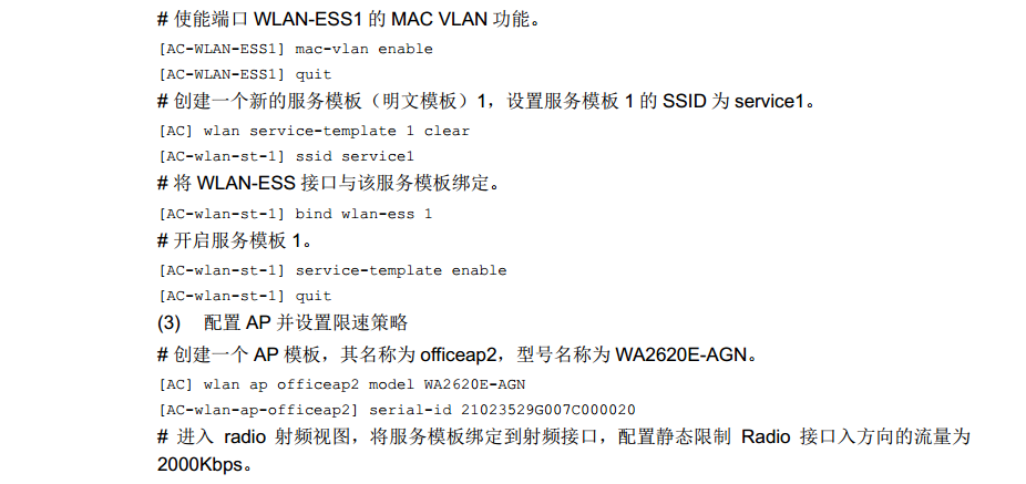 基于无线服务的无线客户端的速率限制是指对于同一个服务模板,AC根据配置情况对无线客户端进行限速。