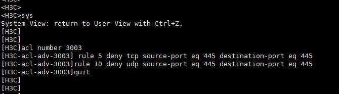 配置禁止445端口访问的acl策略提示找不到命令 command found at 。。。。