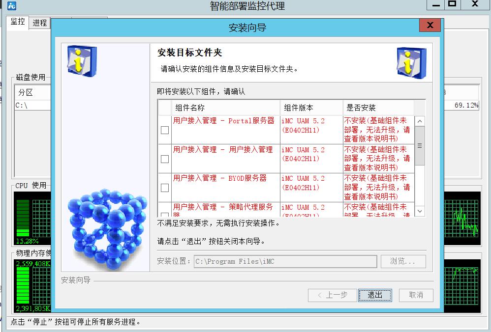 在虚拟机上通过智能部署监控代理安装UAM,但显示