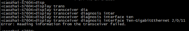 dis transceiver diagnosis interface ten-gig 2/0/11提示error:reading informating from the transceiver failed.
