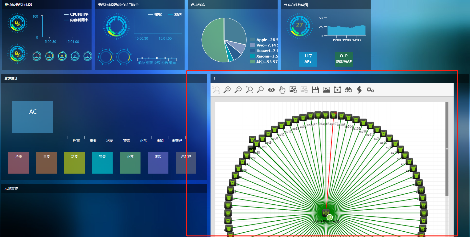 把IMC的主题风格改成了星空,无线视图的拓扑背景确实变成跟数据板背景颜色一致了,但是平台网络拓扑的展示又变白色了,这也太那个了吧。。。。