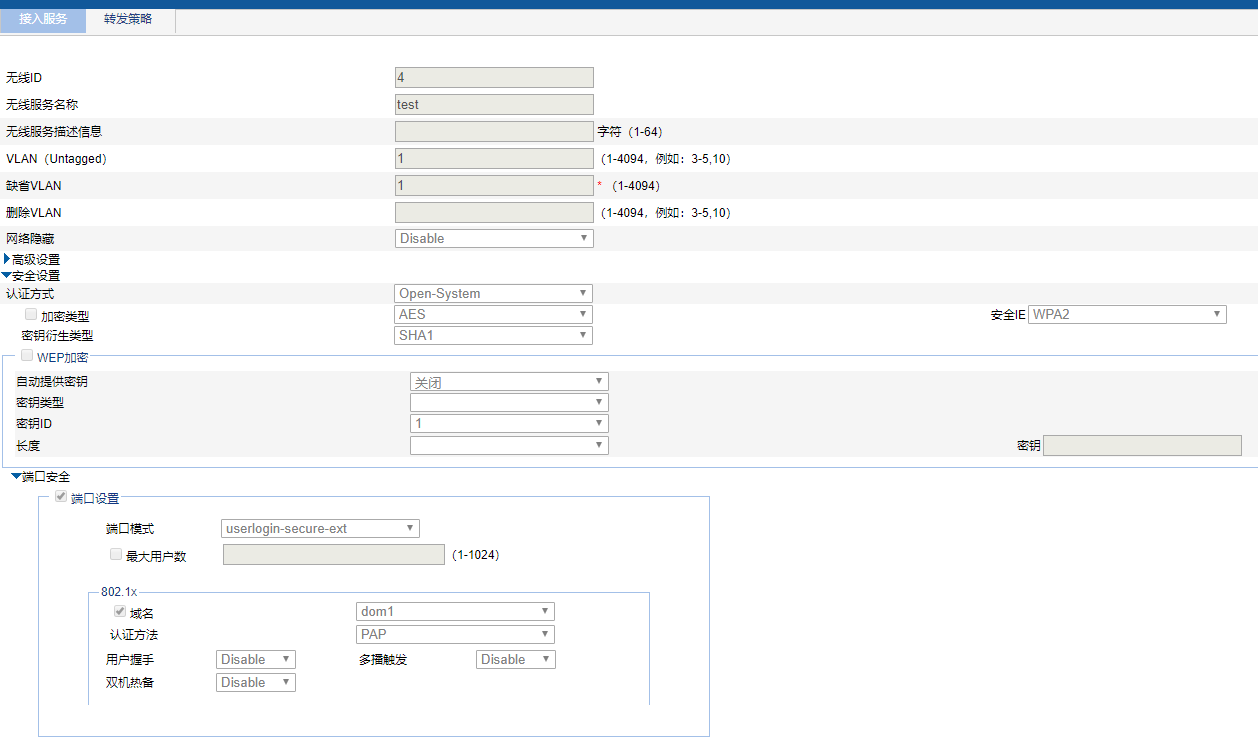 我在WAC上配置了802.1x+radius认证,同时为了测试,我在wac上也配置了telnet采用radius认证。