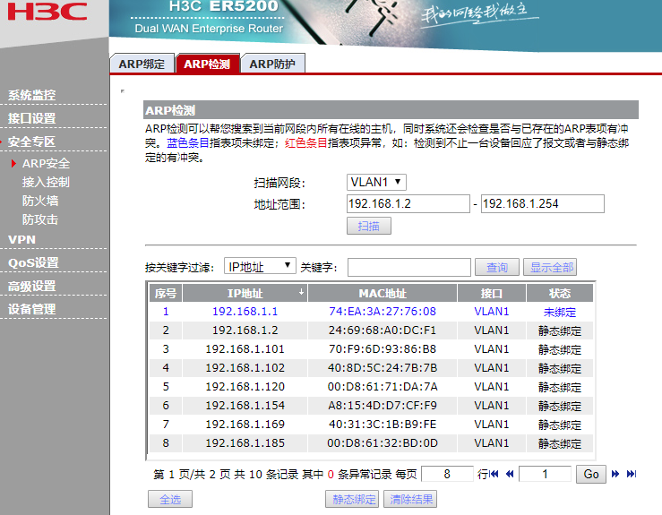 所有人用的都是vlan , 关掉都不能上网了,我能不能改掉vlan 网段地址啊?把192.168.1.1改成192.168.2.1,同时要注意什么呢?这样可以解决arp欺骗吗。望各位大神多多指点不胜感激!