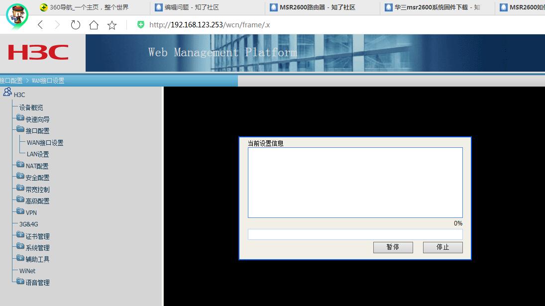 wan口设置,修改或未修改,点确定就成这样子,目前怕恢复出厂后就无法设置了。设备型号 MSR26-00,软件版本 CMW520-R2516P19
