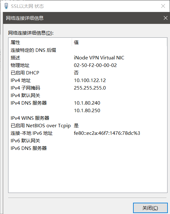 inode 拨号ssl vpn成功,缺无法ping和访问内网设备,别的电脑没问题,只有我的电脑有问题,是我电脑有什么服务没开启吗