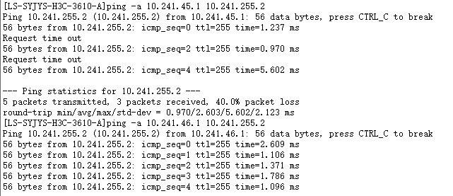 10.241.255.2是上联交换机的loop0地址,回ping都正常
