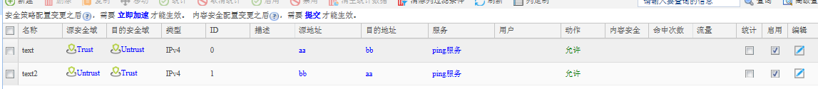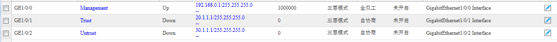 我这接口状态都是up,我想让防火墙2个接口插得pc,ping的通,我不知道哪里搞错了