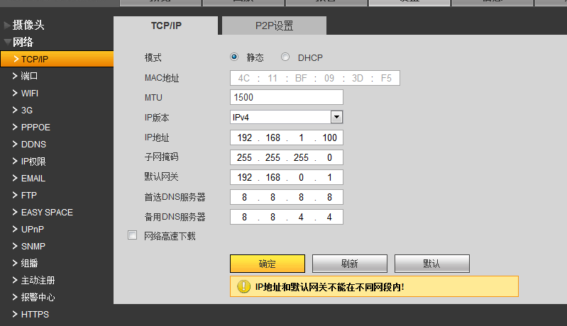 现在我要在录像机上填写我的网关是多少啊??摄像头ip是192.168.1..... 我的电脑ip是192.168.0.95